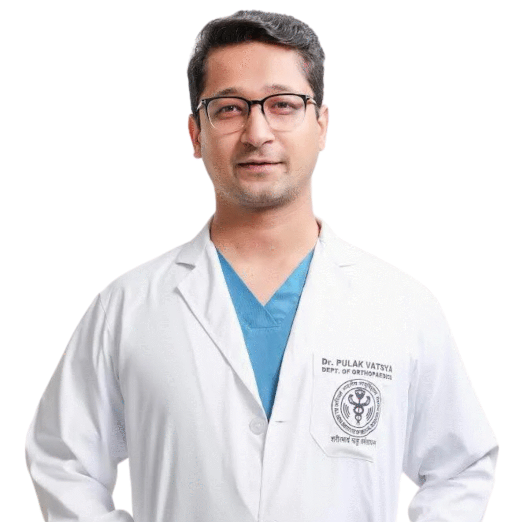 Dr. Pulak Vatsya is extensively trained in the Direct Anterior Approach (DAA) for hip replacement — a minimally invasive technique that ensures faster recovery and less pain. With global training across AIIMS Delhi, PGIMER Chandigarh and Japan, he specializes in robotic hip & knee replacements, complex revisions and sports injury care. (AIIMS Delhi, PGIMER Chandigarh, Japan)